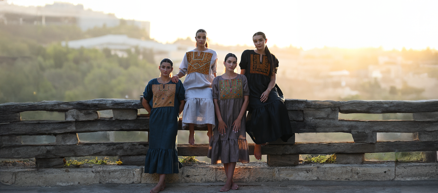At Jeel, we strive to honor and showcase the beauty of Old Palestinian Embroidery. The intricacies involved in creating Palestinian Thobes are remarkable. Each garment features detailed elements, from the chest panel and its motifs to side panels and colorful appliqué patches in hues like green, red, and orange. A stunning example is this Hebron dress from the 1940s featured in the image. Explore our Old Thobes Collection, now on sale.