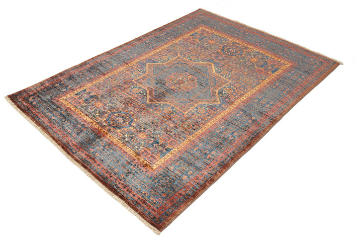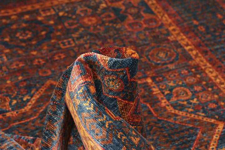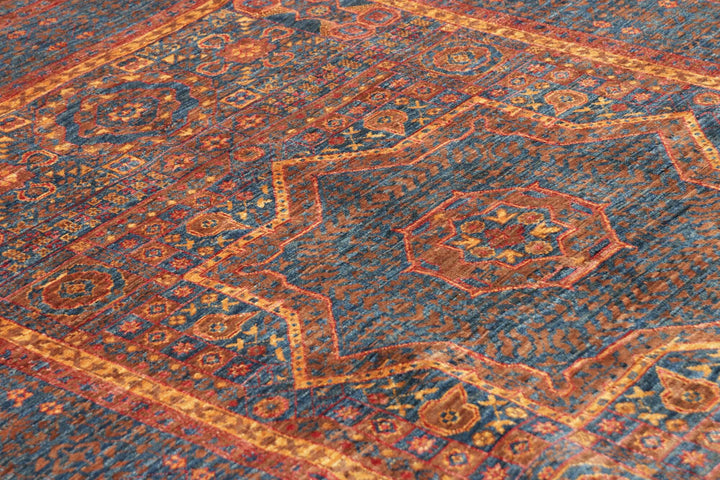 Mamluk Gold Blue Afghan Fine Wool Rug