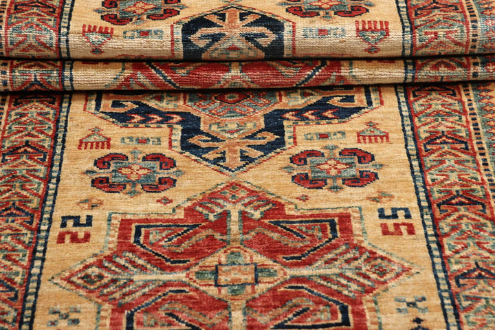 Handmade afghan Kazak rug , made of 100% natural kork wool and very fine knot 200 cm *65 cm