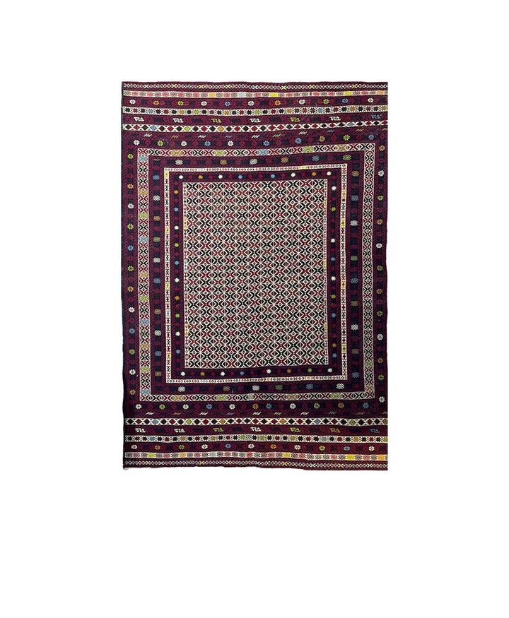 An original hand made Old Afghan Kilim rug, 100% natural wool Maymana Design Tribal work. Size: 175cm *120cm