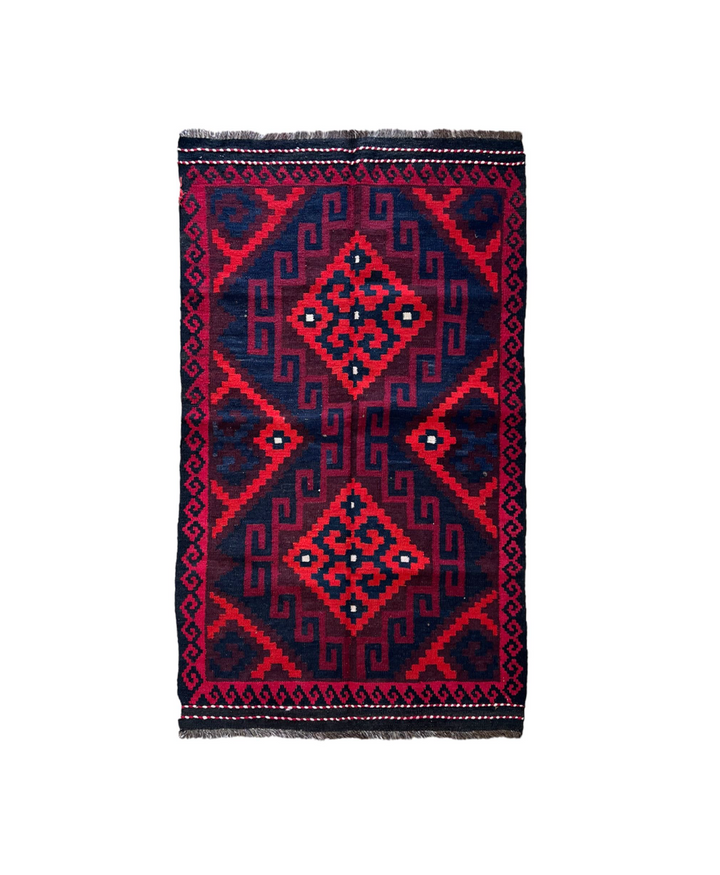 An original hand made Old Afghan Kilim rug, 100% natural wool Maymana Design Tribal work. Size: 159 cm * 93 cm