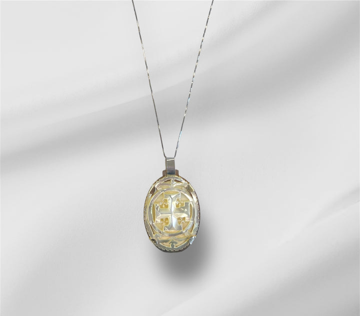 Handmade Bethlehem mother of pearl Jerusalem cross necklace