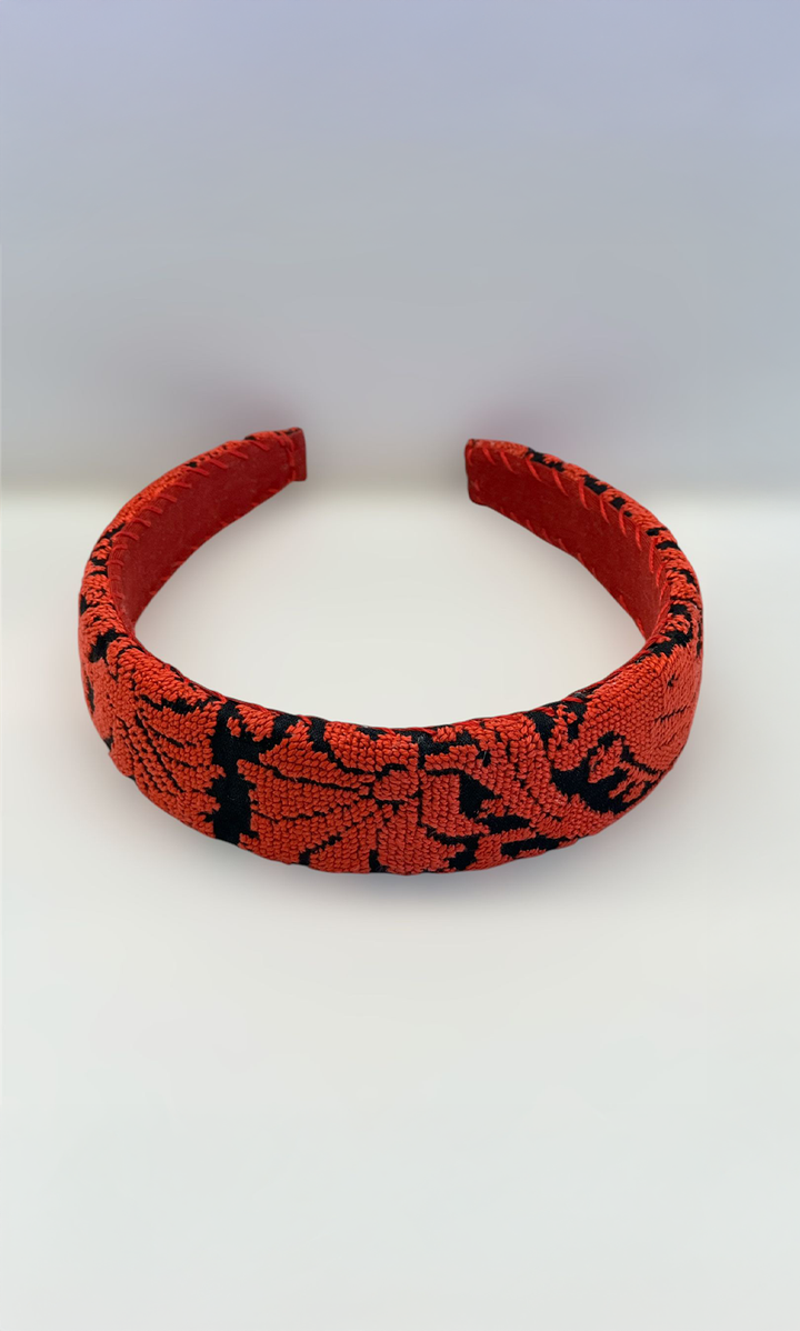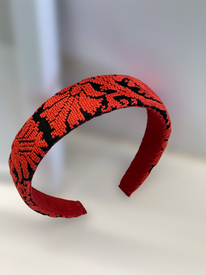An old Palestinian embroidery handmade panel designed into a unique colourful headband.Embroidery is done in the 1970’s silk embroidery on cotton
