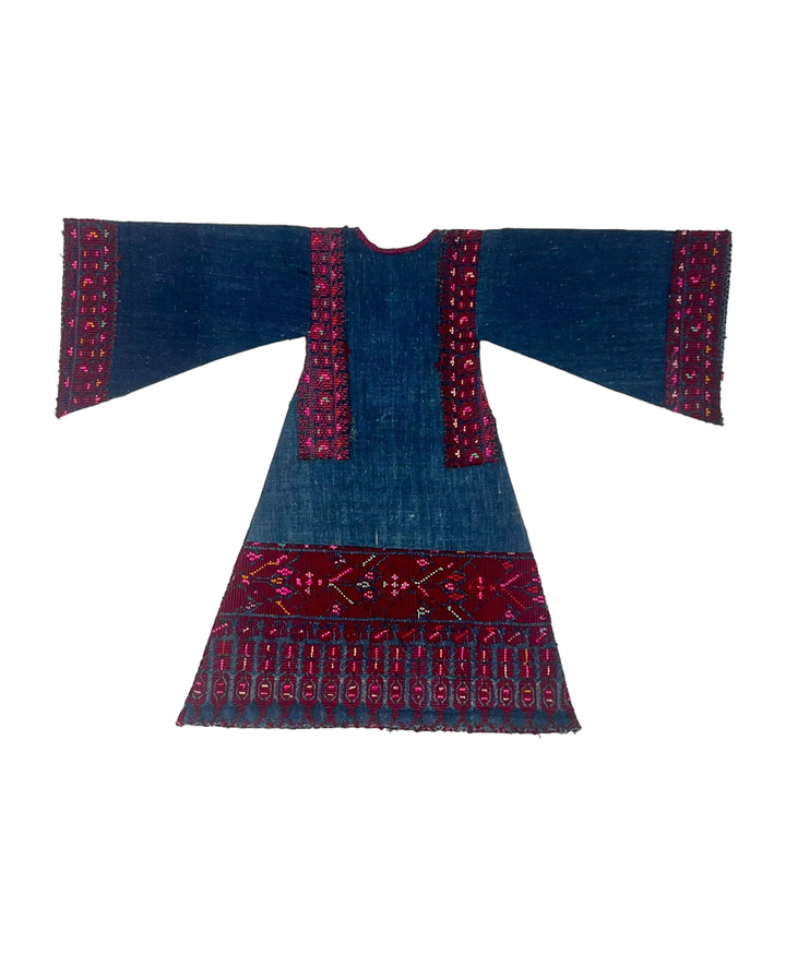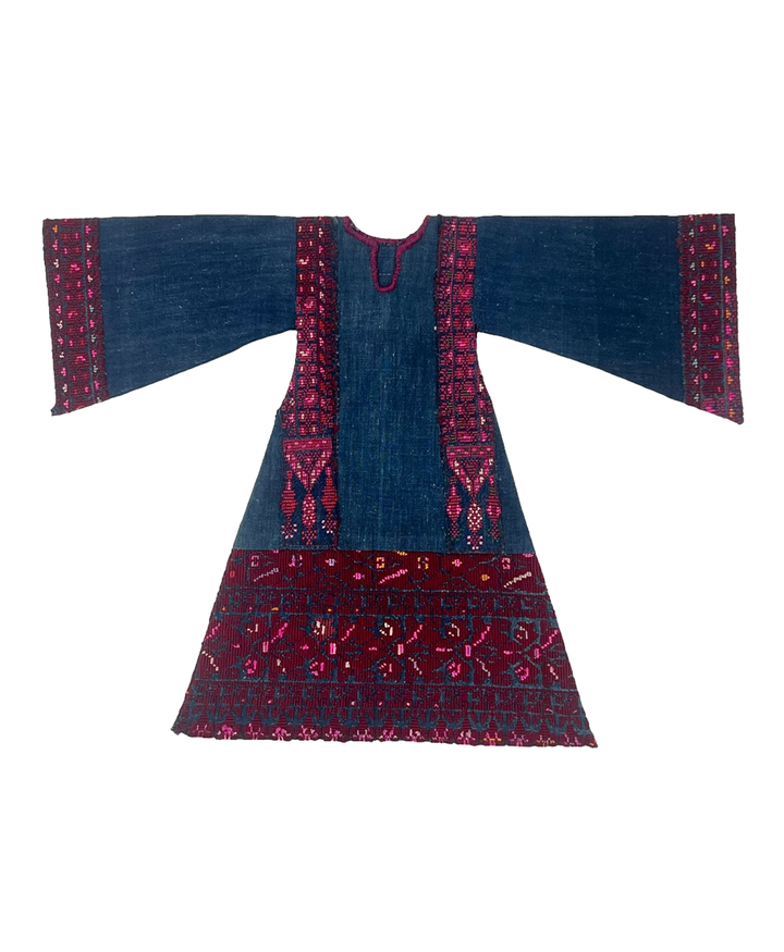 Embodying heritage and tradition, this unique creation captures a piece of Palestinian culture with its antique embroidery panels from circa 1900. Inspired by vintage doll dresses, each stitch holds the legacy of Palestinian craftsmanship, adding a touch of timeless elegance...