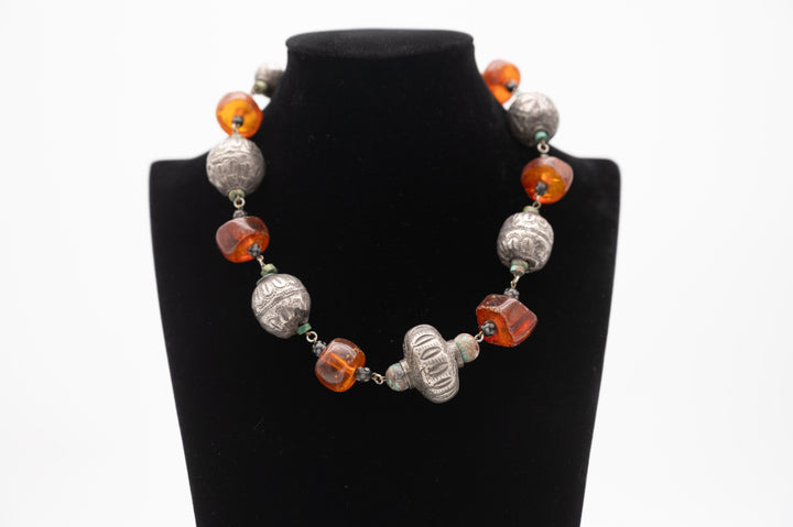 Bedouin amber and silver necklace