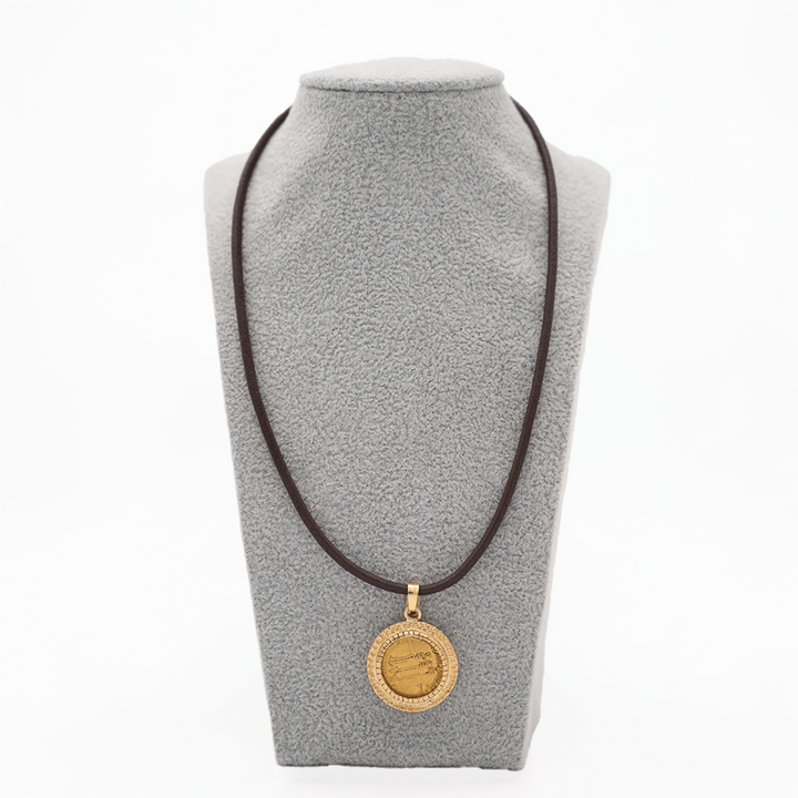 An original handmade old Islamic golden coin from the Abasid time made with gold ring setting and leather gold setting necklace