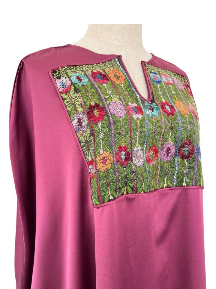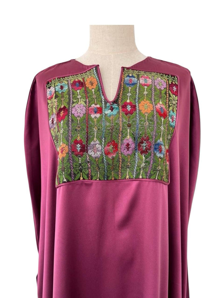 Silk Abaya with Old Palestinian Embroidery Chest Panel
