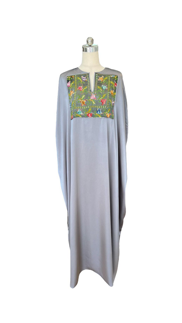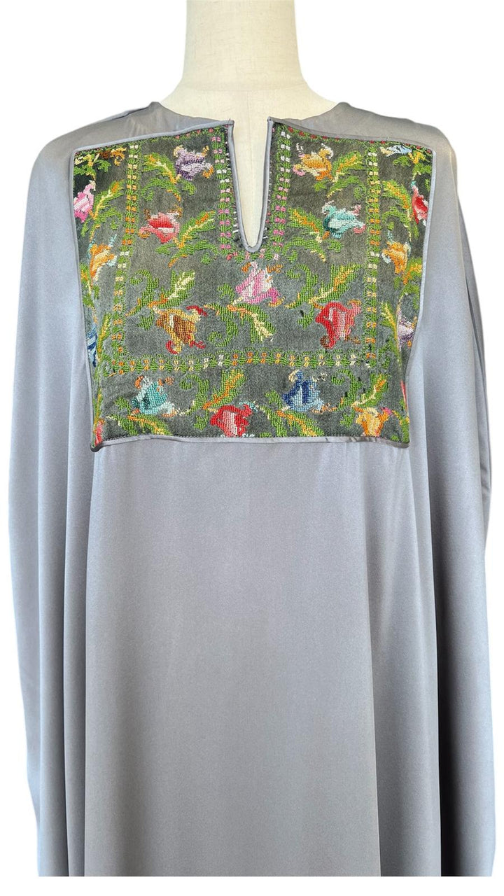 Silk Abaya with Old Palestinian Embroidery Chest Panel