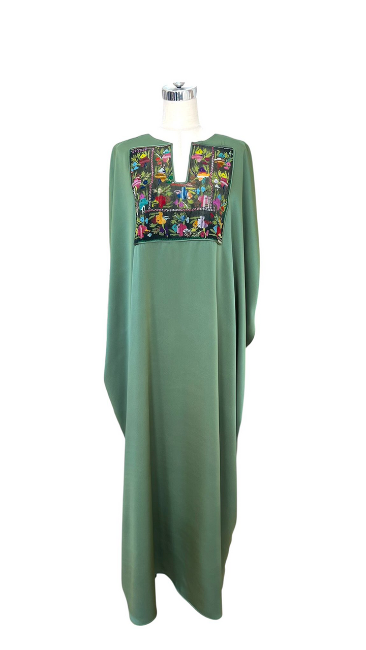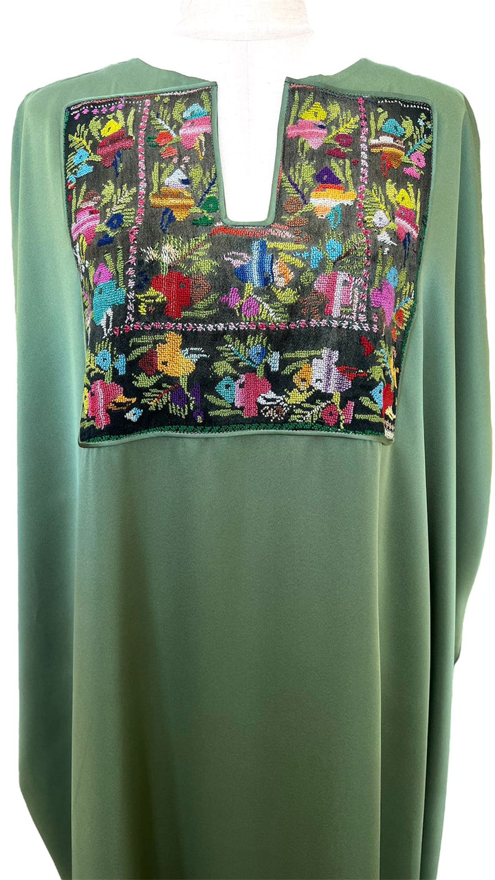 Silk Green Abaya with Old Hebron Chest Panel 1970's