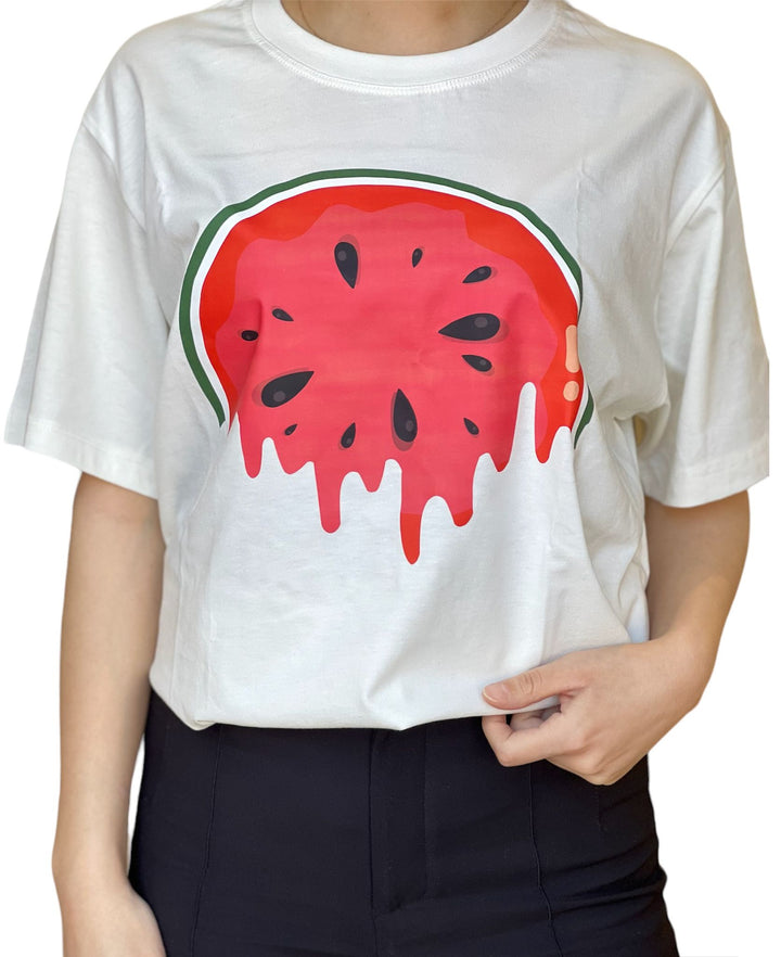 Make a bold statement with the Watermelon Palestine T-shirt by Jeel Designs, featuring a striking watermelon graphic that embodies resilience and solidarity. Crafted from high-quality cotton fabric, this tee is as comfortable as it is impactful. Stand out and stand...
